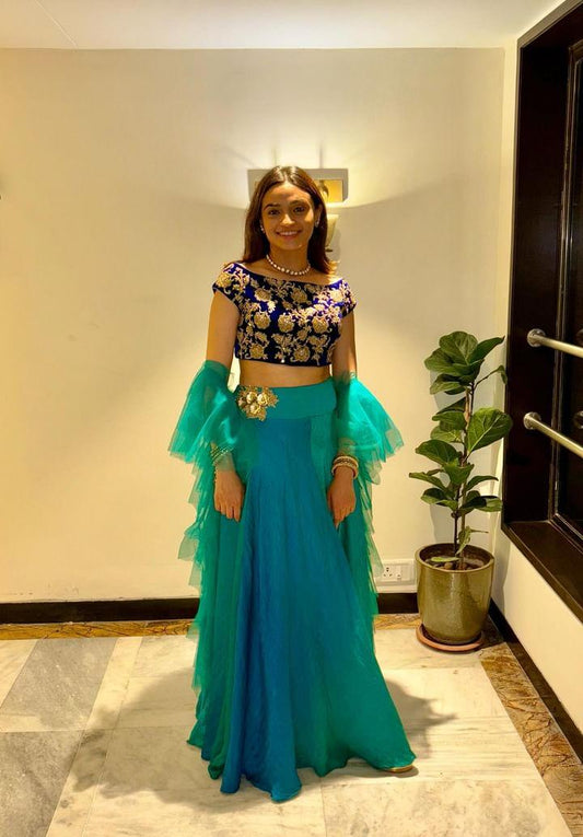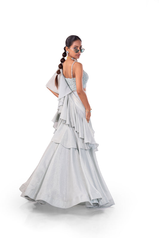 Pastel Blue Ruffle Lehenga Saree