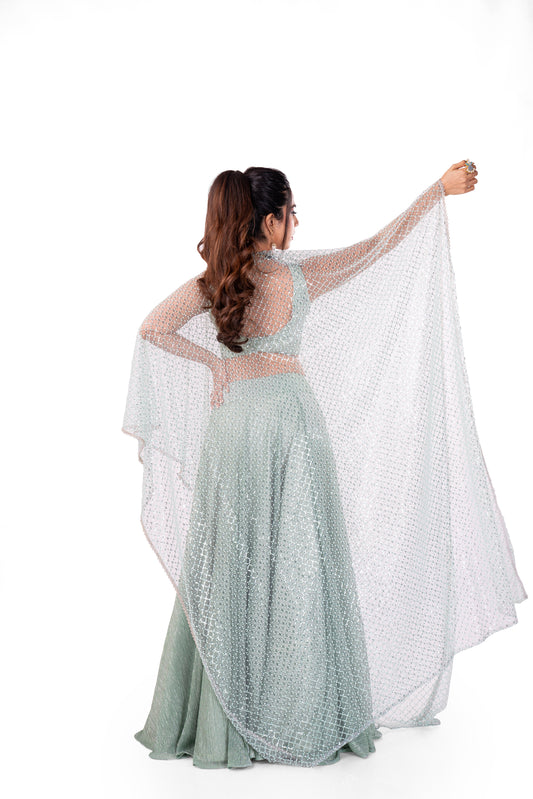 Pastel Blue-Green Lehenga Set