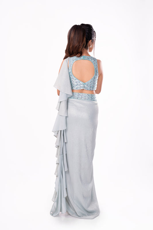 Pastel Blue Ruffle Saree