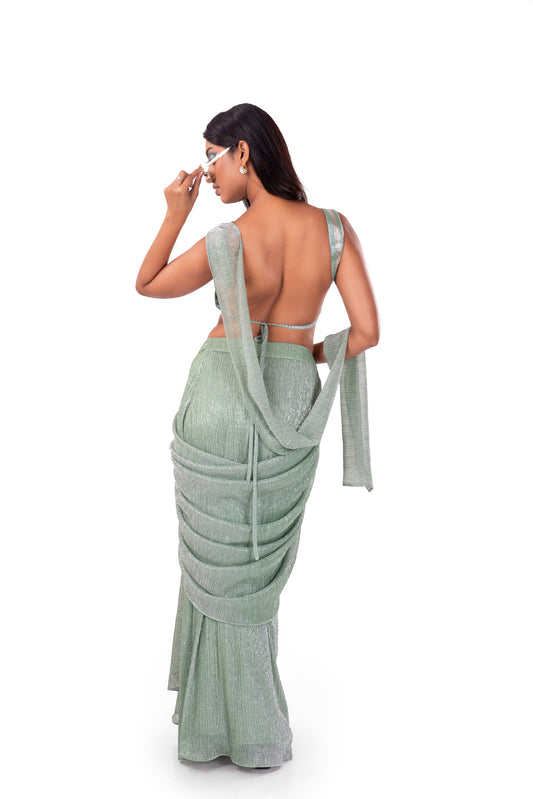Pastel Sea Green Pre-Draped Saree
