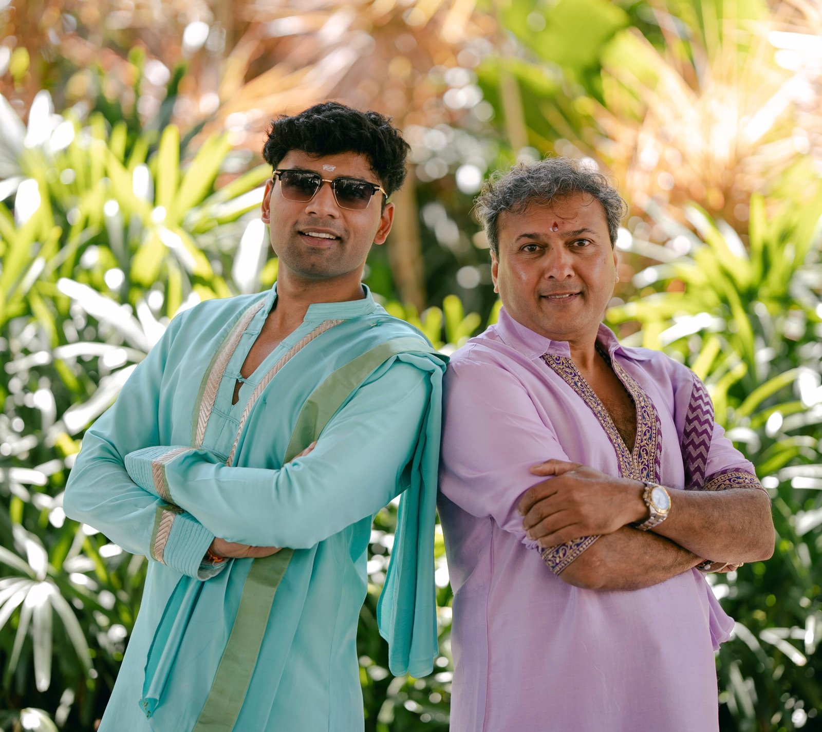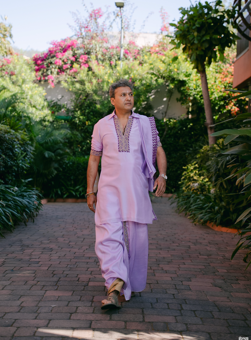 We designed a classic veshti and silk kurta for our bride’s father. This ensemble set the perfect tone for a South Indian haldi celebration.