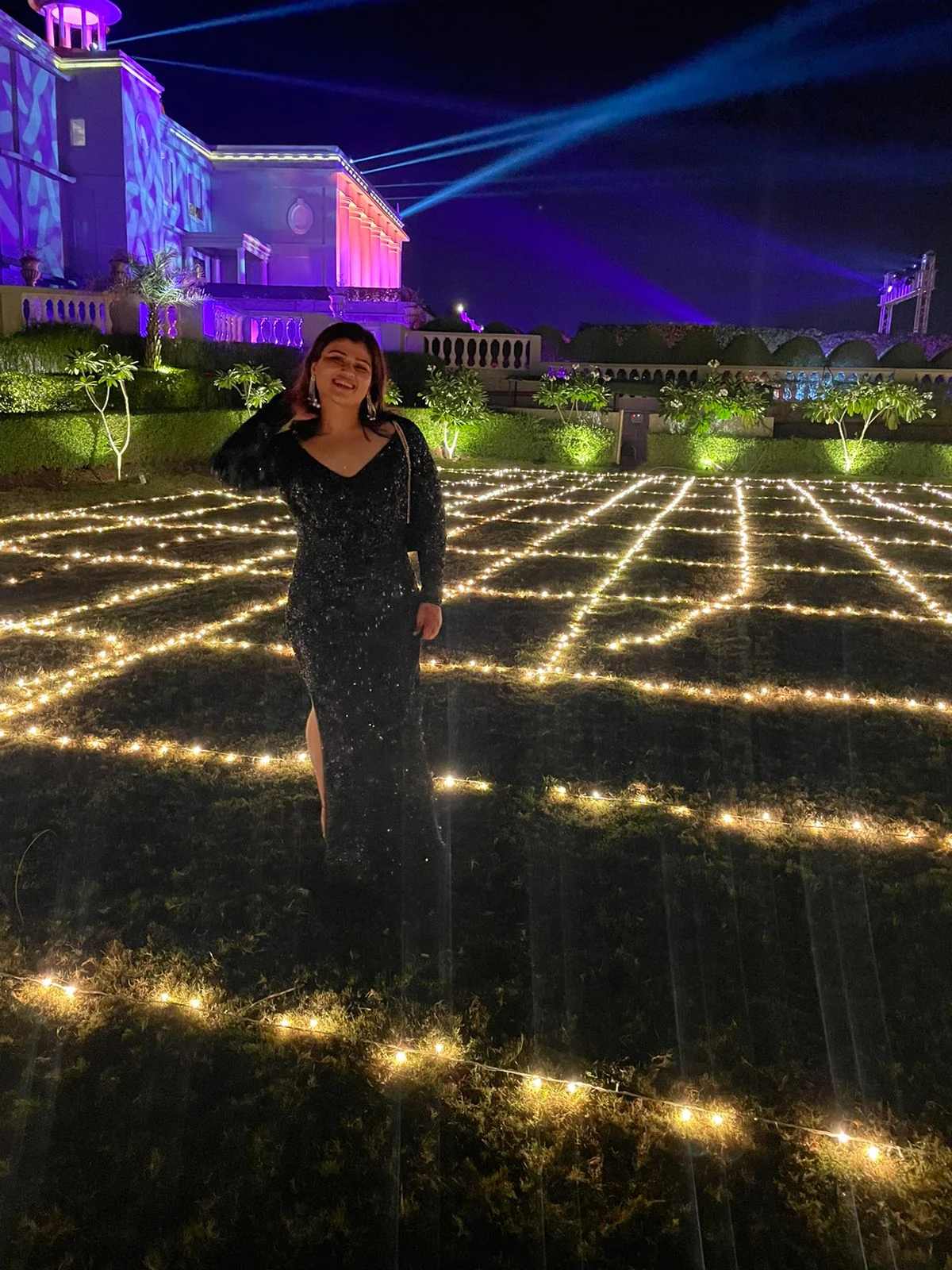 Our client wanted a contemporary look for a black-tie themed gala dinner. Keeping in mind her personality and preferences, we curated this stunning low-backed gown, with self kardana hand-embroidery to complement her personality.