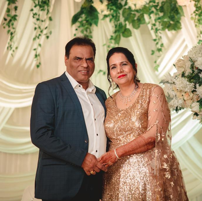 Our client wanted a heavy look for her son’s engagement ceremony but also something she could carry comfortably through the evening. We gave her a beautiful gold-champagne gown, made from imported jute and elevated the look by adding long, slitted sleeves to incorporate an indo-western aspect.