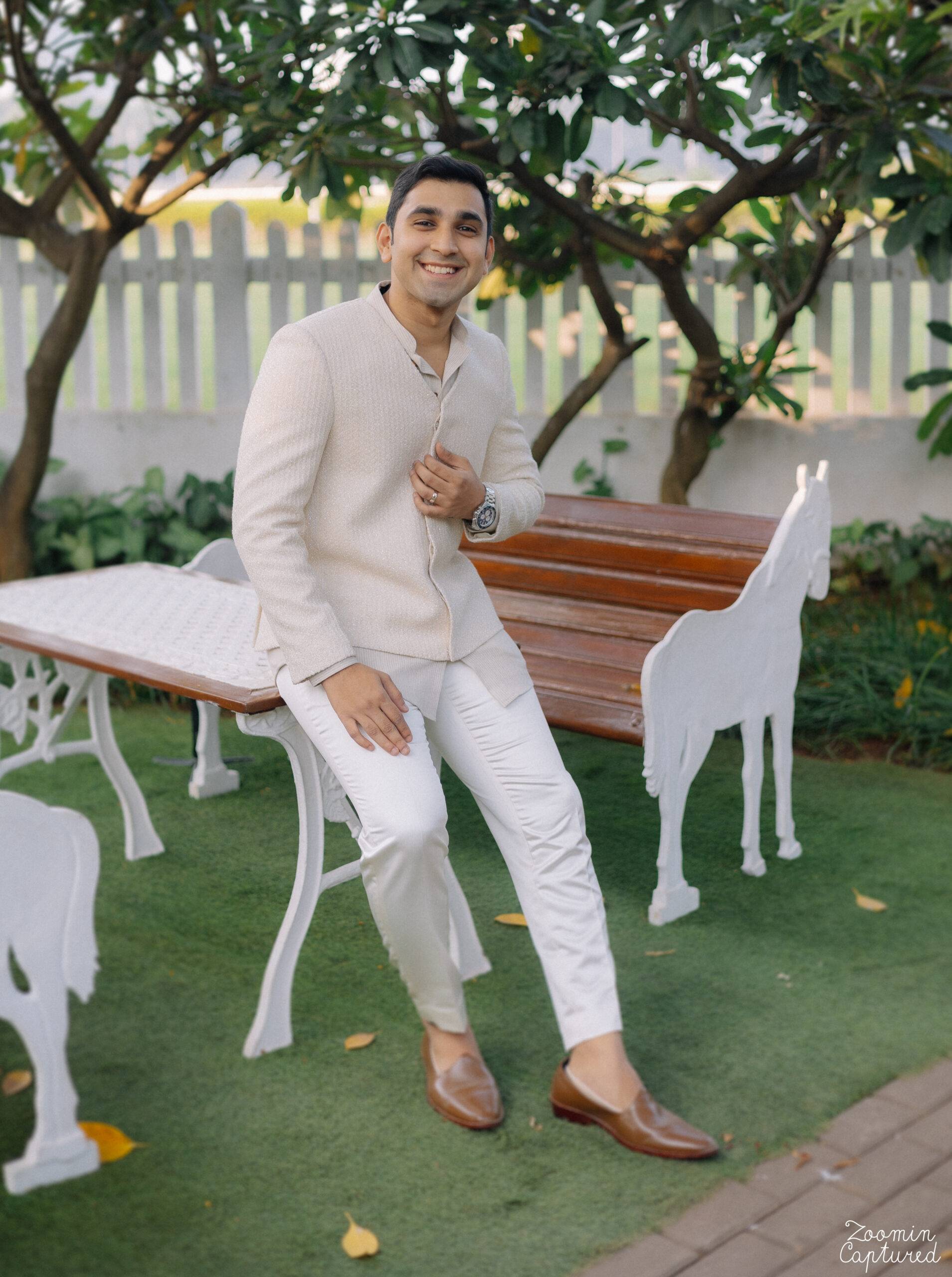 For JV Groom’s Roka ceremony, we crafted a double-layer deconstructed set that was formal, poised, and timelessly classic. Every detail reflected his personality.
