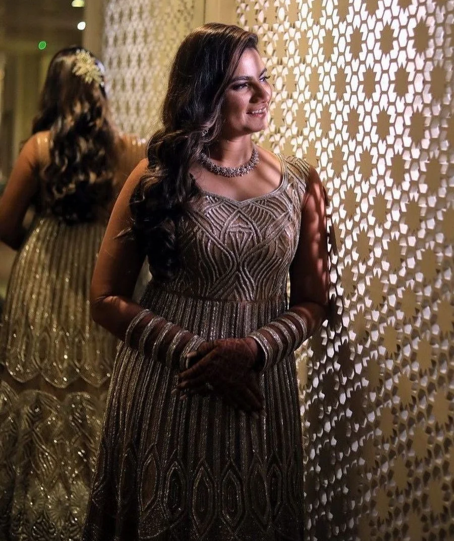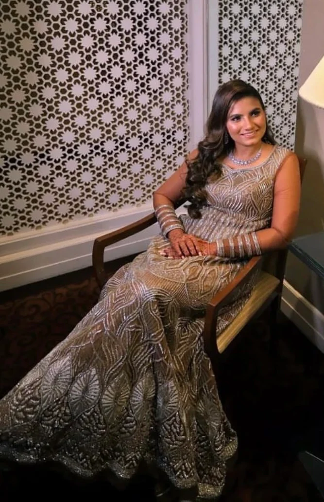 Our bride being a doctor wanted a sophisticated look while incorporating contemporary elements. Keeping that in mind, we curated an outfit that was the perfect blend of modern elegance and sophistication for her reception. Tap the video for more!