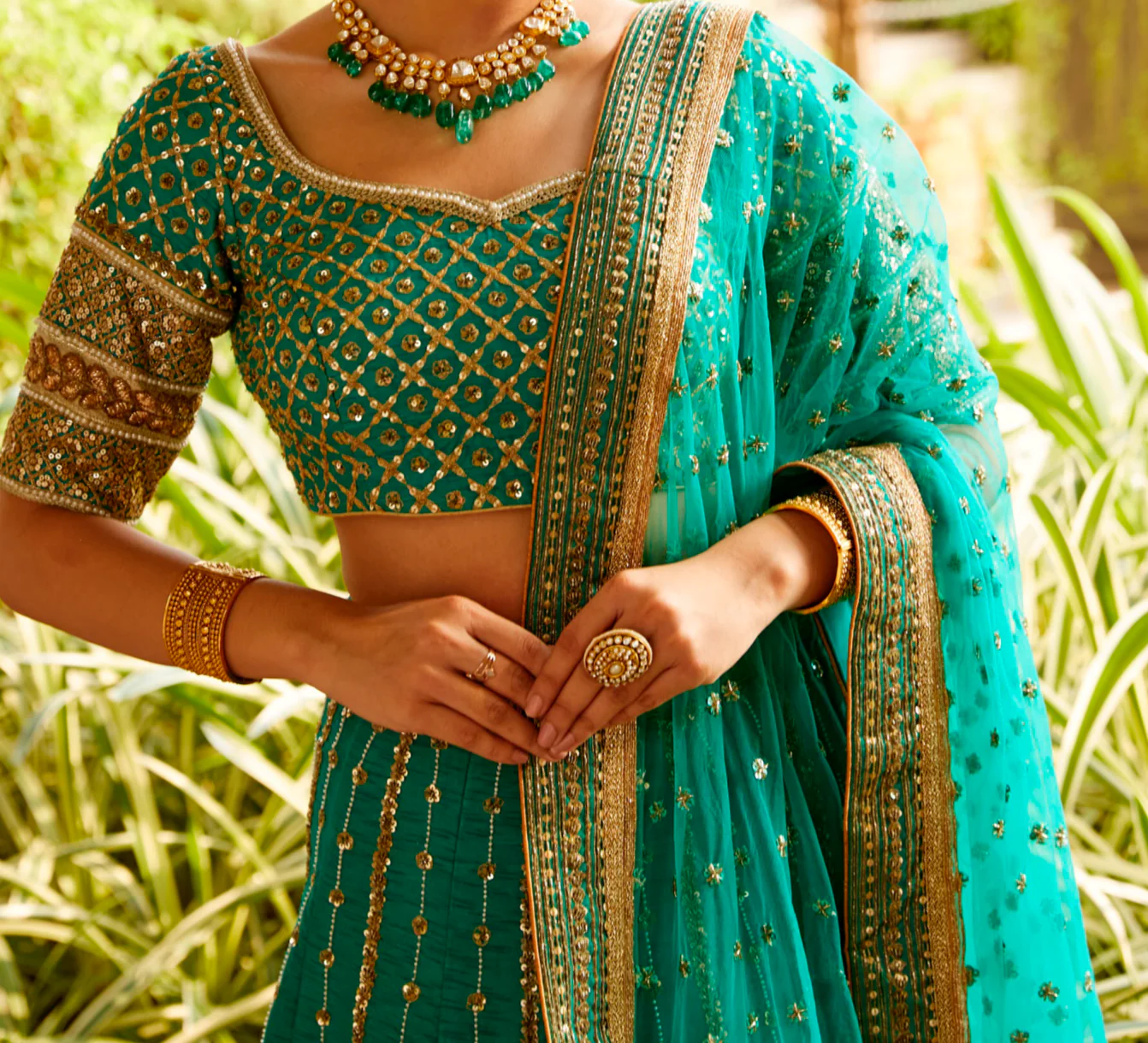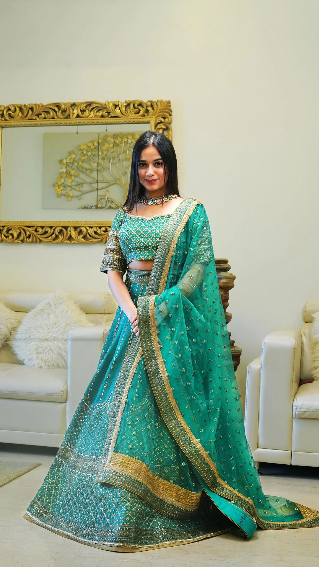 Our client was looking for a classic lehenga for a close family mehendi function. We created this zardozi lehenga in this gorgeous, fresh sea green shade.