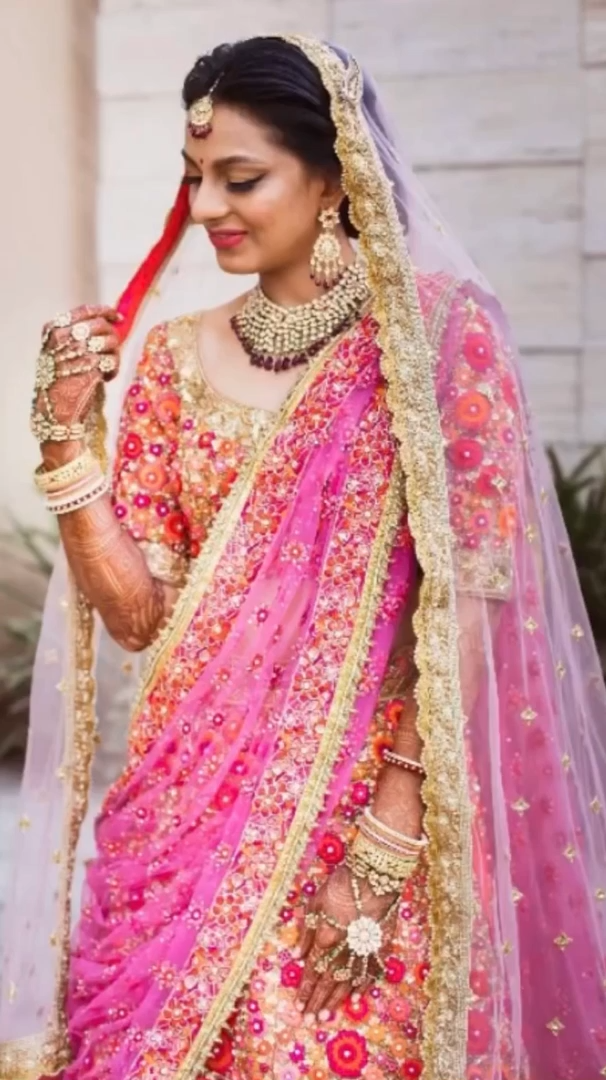 Our bride had her heart set on a red lehenga but tradition prevented her from wearing one. But at Jesal Vora, we pride ourselves in bringing our bride’s dreams to life, and hence we created a custom handcrafted resham zardozi wedding lehenga that didn’t have a single thread of red but gave the illusion of red lehenga.