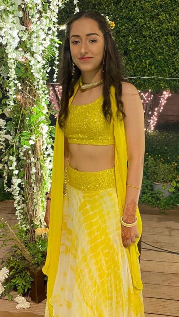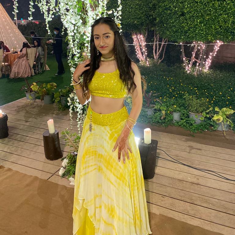 Our charming client was looking for a light and stylish look for a family haldi function. We gave her this lovely tie-dye lehenga with embellished sequins to match her preferences and personality.