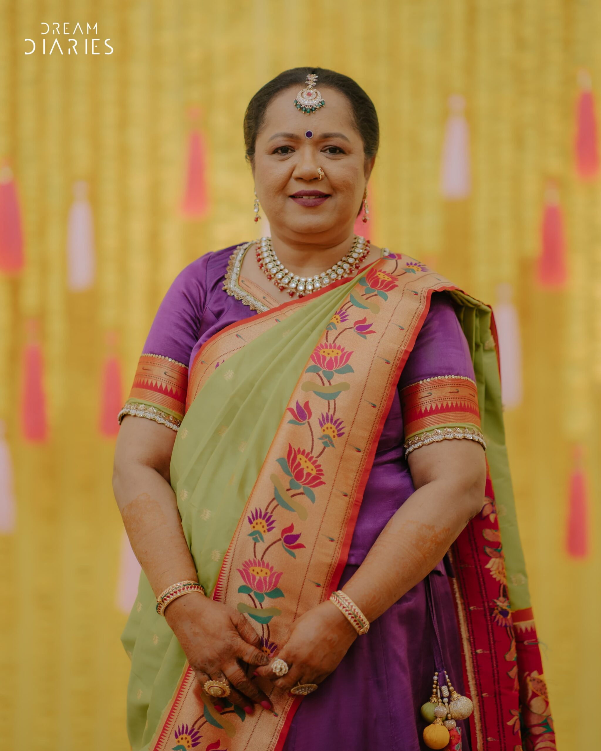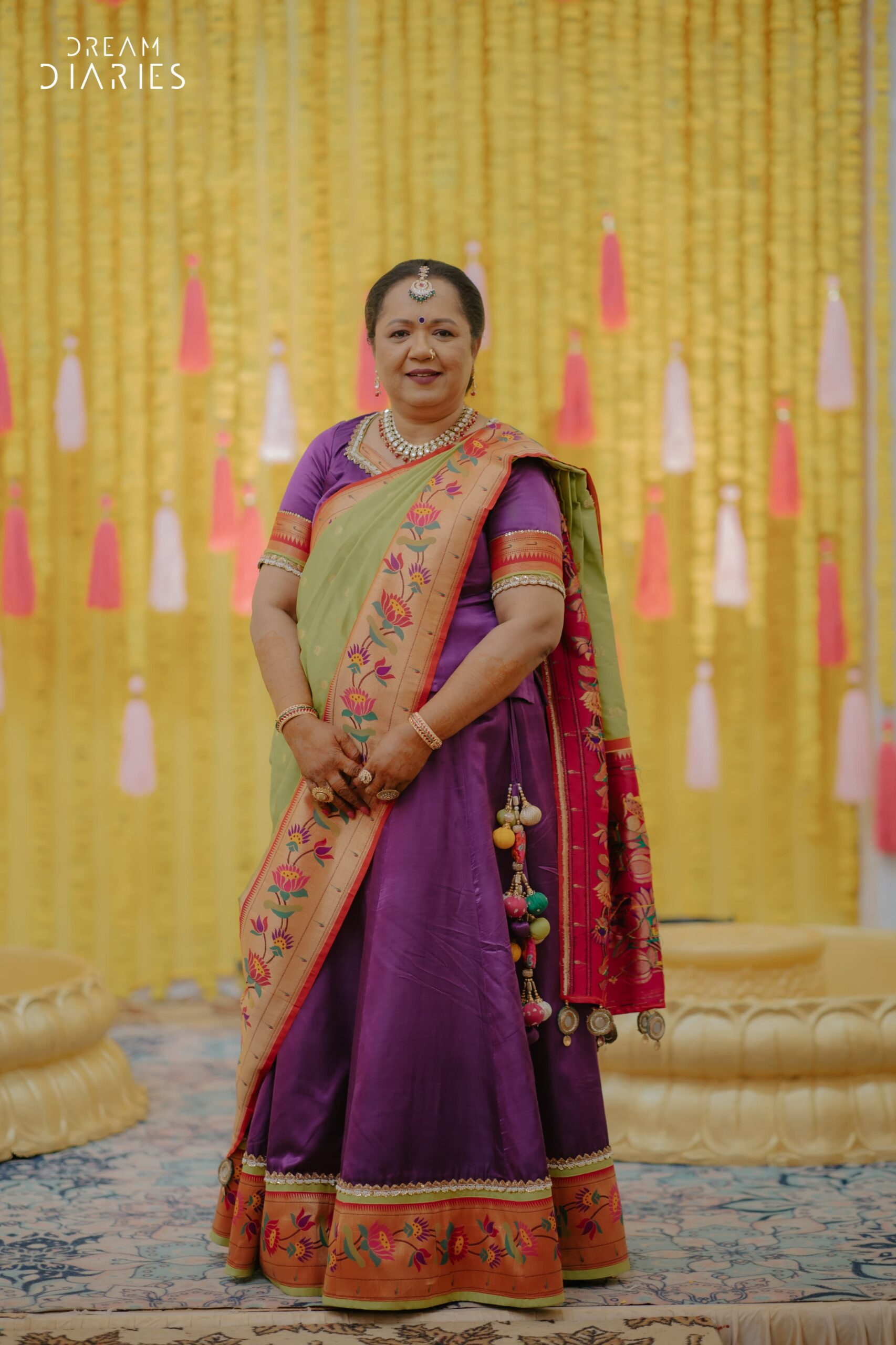 We created a simple yet beautiful Paithani-inspired outfit, keeping the look cute and elegant for our clients daughters Haldi ceremony.