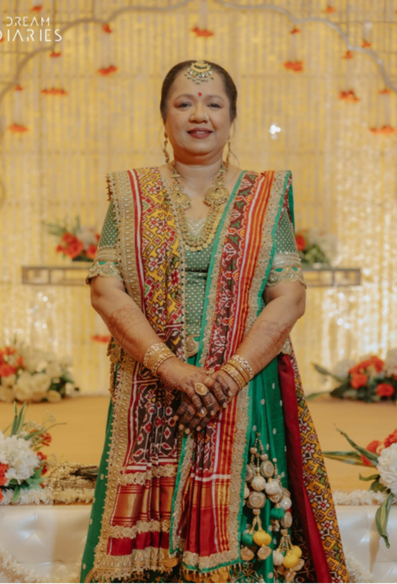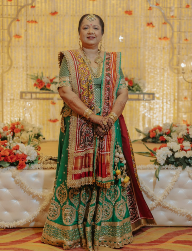 At Jesal Vora, we believe every mother deserves a moment to shine—her custom look, with her patola saree draped as a dupatta and patola khes paired with our signature Chandbali lehenga, did just that.