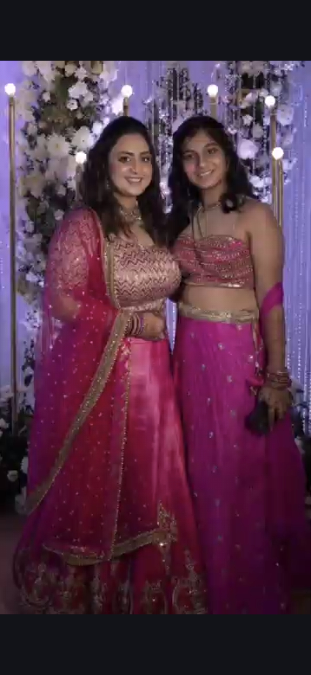 Our client wanted a outfit that made her feel comfortable and confident in her own skin for the first wedding in her family. She wanted to move outside her comfort zone but was hesitant. Keeping in mind her preferences and personality, we created this pink ombre-shaded open chandbali lehenga with chevron handcrafted blouse.