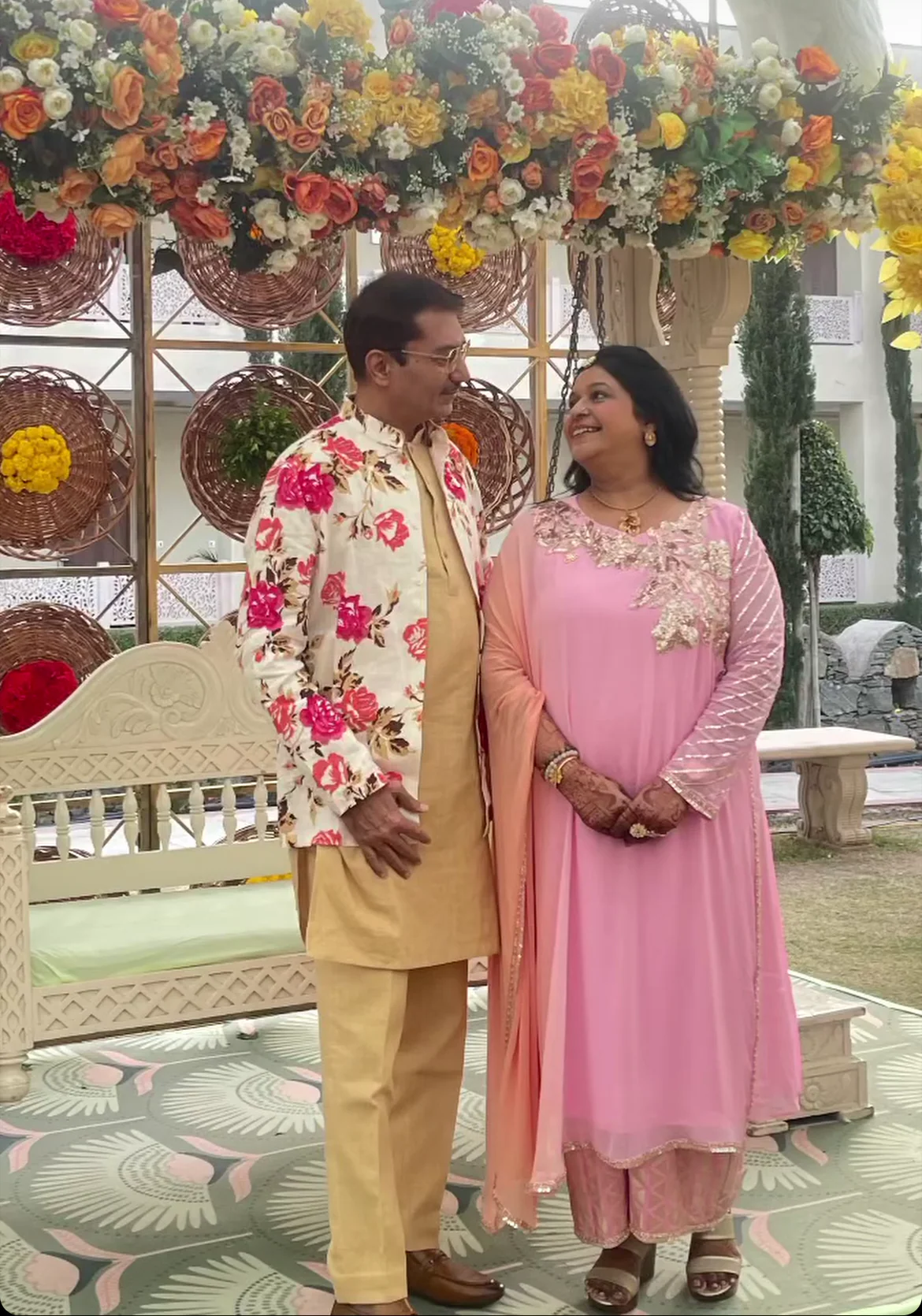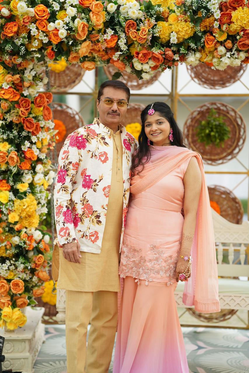Chill, smart, and effortlessly stylish— We gave the grooms father a floral jacket paired with a khadi suit, perfect for a relaxed yet polished vibe for the haldi ceremony.