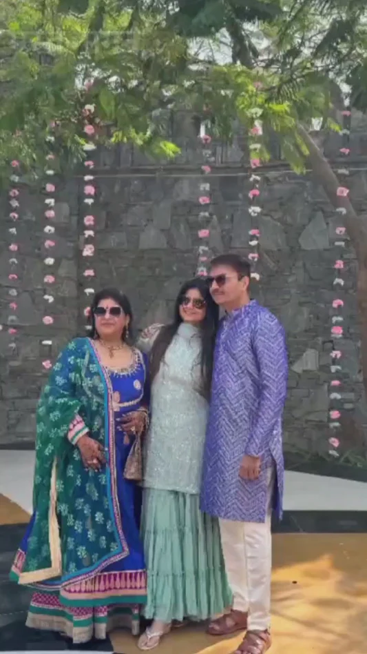 For the groom’s father, we designed a simple and sophisticated Banarasi blue kurta set, perfect for welcoming guests with warmth and style.