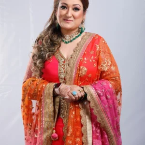 Our beautiful client in our timeless pink Jesal Vora kurta set, designed to capture the perfect balance of tradition and effortless sophistication.