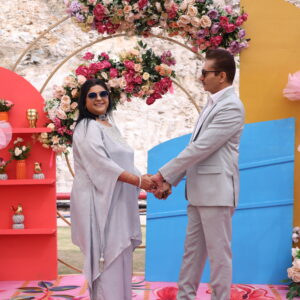 “The Jesal Vora Signature saree was beyond elegant, the delicate moti beads and Zardozi work made her look so graceful and sophisticated.”