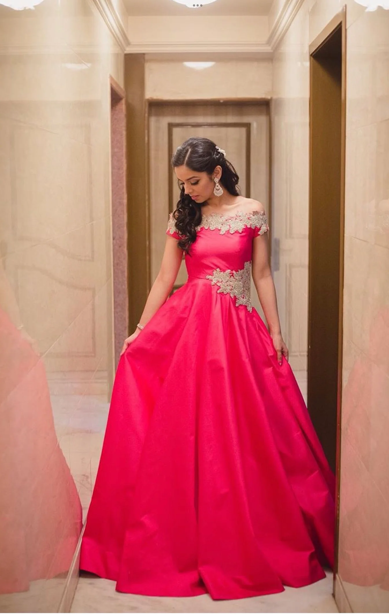 Our beautiful client wanted an outfit for a formal ball themed reception. She wanted to move away from the more muted and simple colours. We crafted this stunning pink gown with gold embellishment to uplift the look.