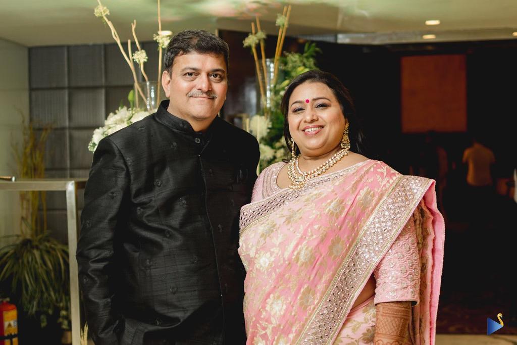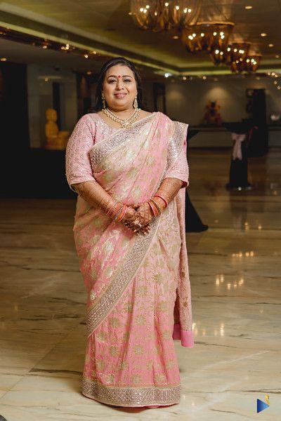 For our clients son’s sangeet, we created this stunning ombre pink banarasi georgette saree allowing her to dance the night away. A contemporary blouse to match the sangeet theme of glitz and glam!