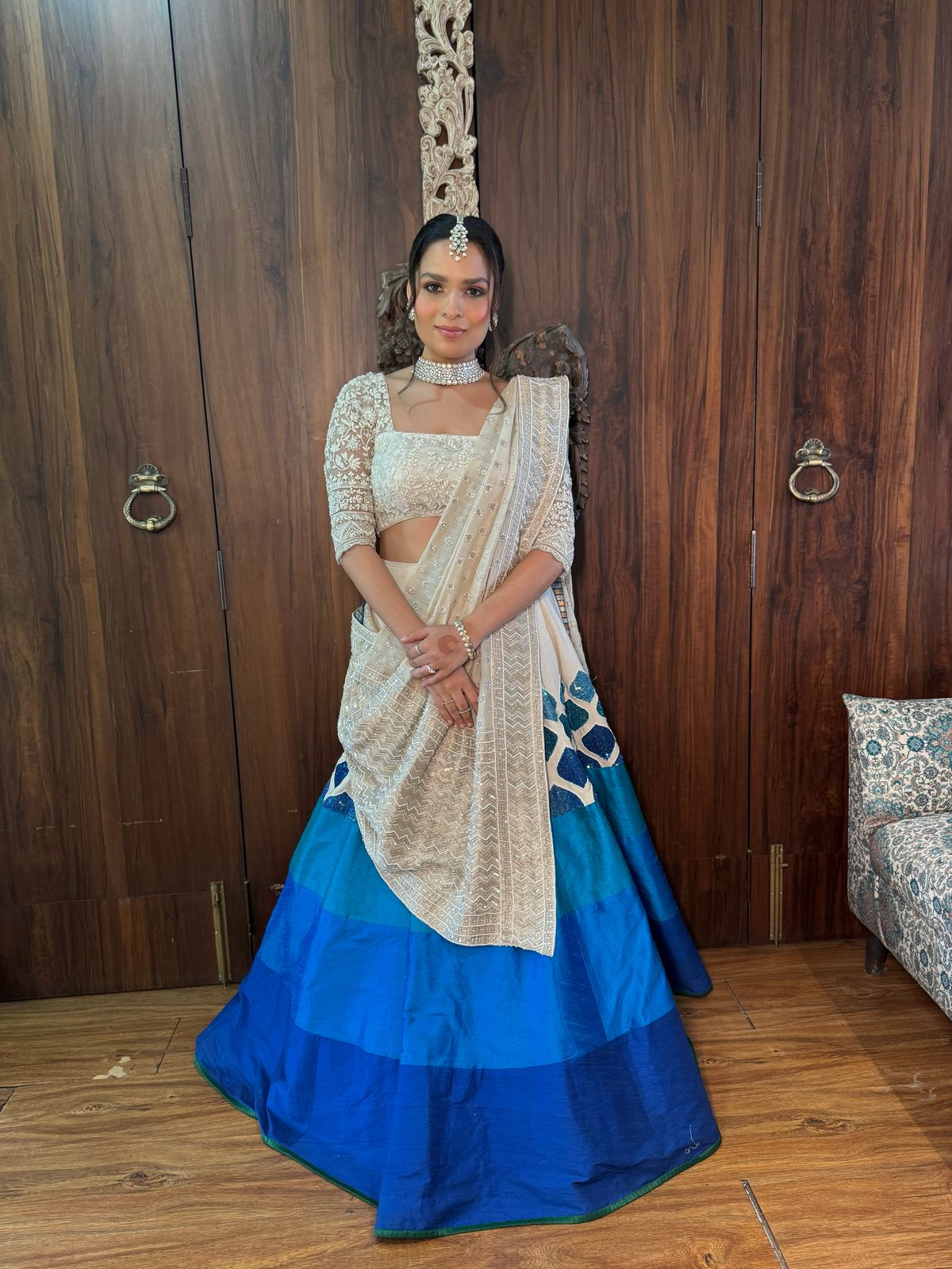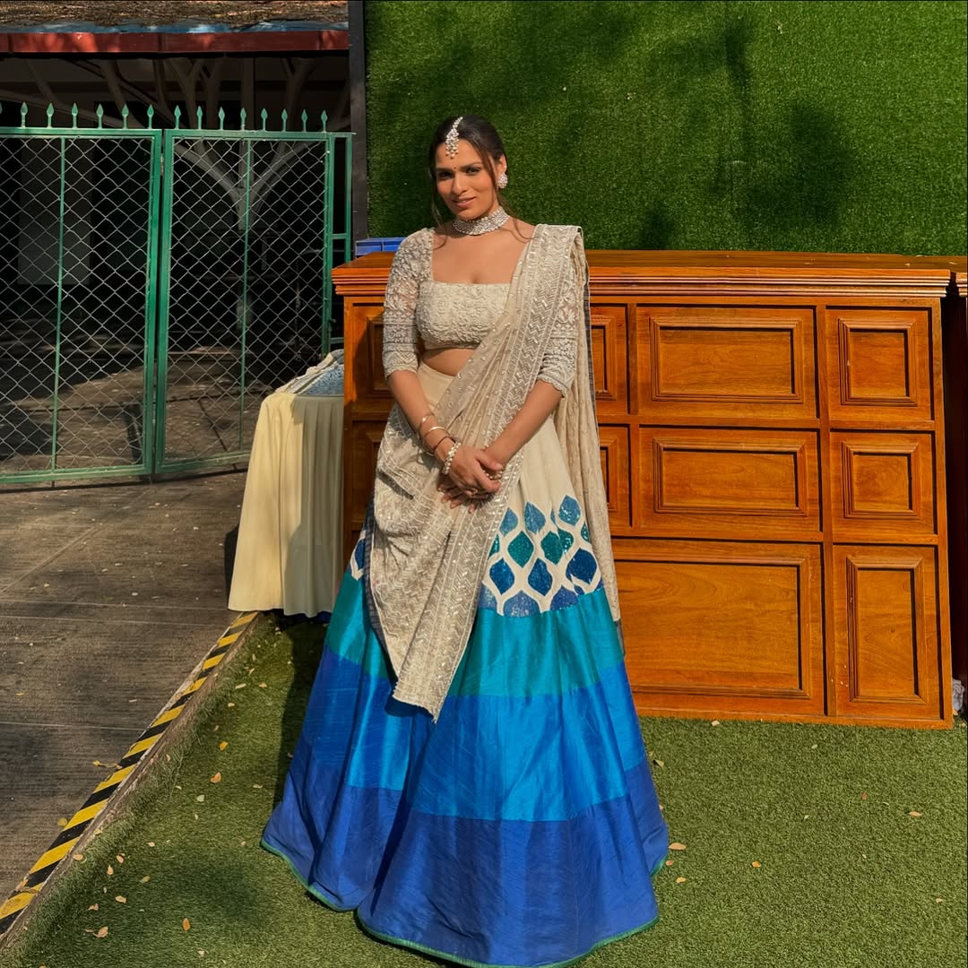 Our Co-founder chose the Signature JV lehenga in hues of blue for her sisters wedding!