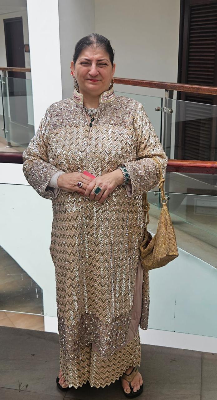 For a family wedding, our client wanted a comfortable outfit that matched her personality. Keeping that in mind, we designed this handcrafted chevron co-ord set, with over 30 hours of handwork to match her preferences and personality.