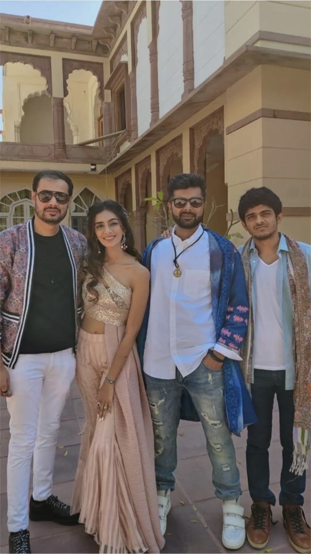 Our client wanted an outfit that matched her boho themed event. We gave her this lovely indo-western draped pants set along with a one-shoulder blouse to match her personality and preferences.