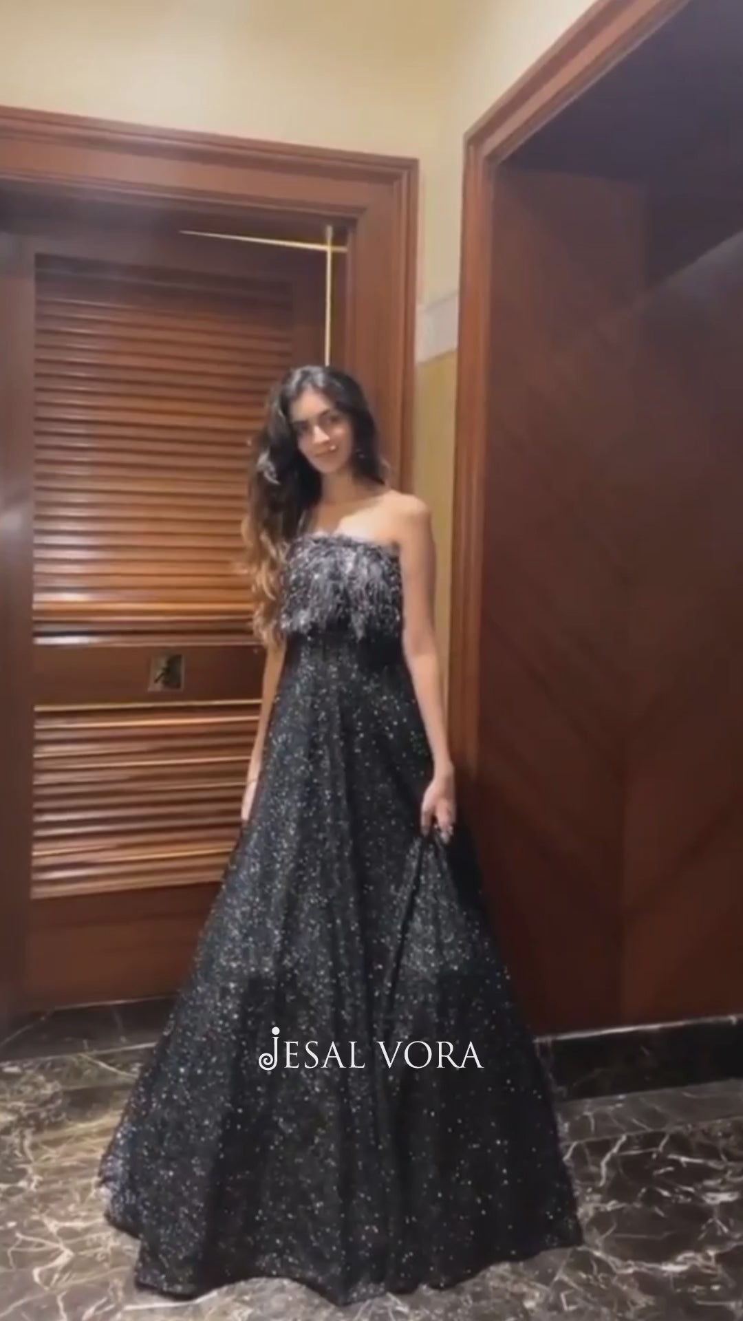 For an engagement function, our client wanted a unique look. We curated a lovely gown for her, highlighted with hints of fur to match her preferences.