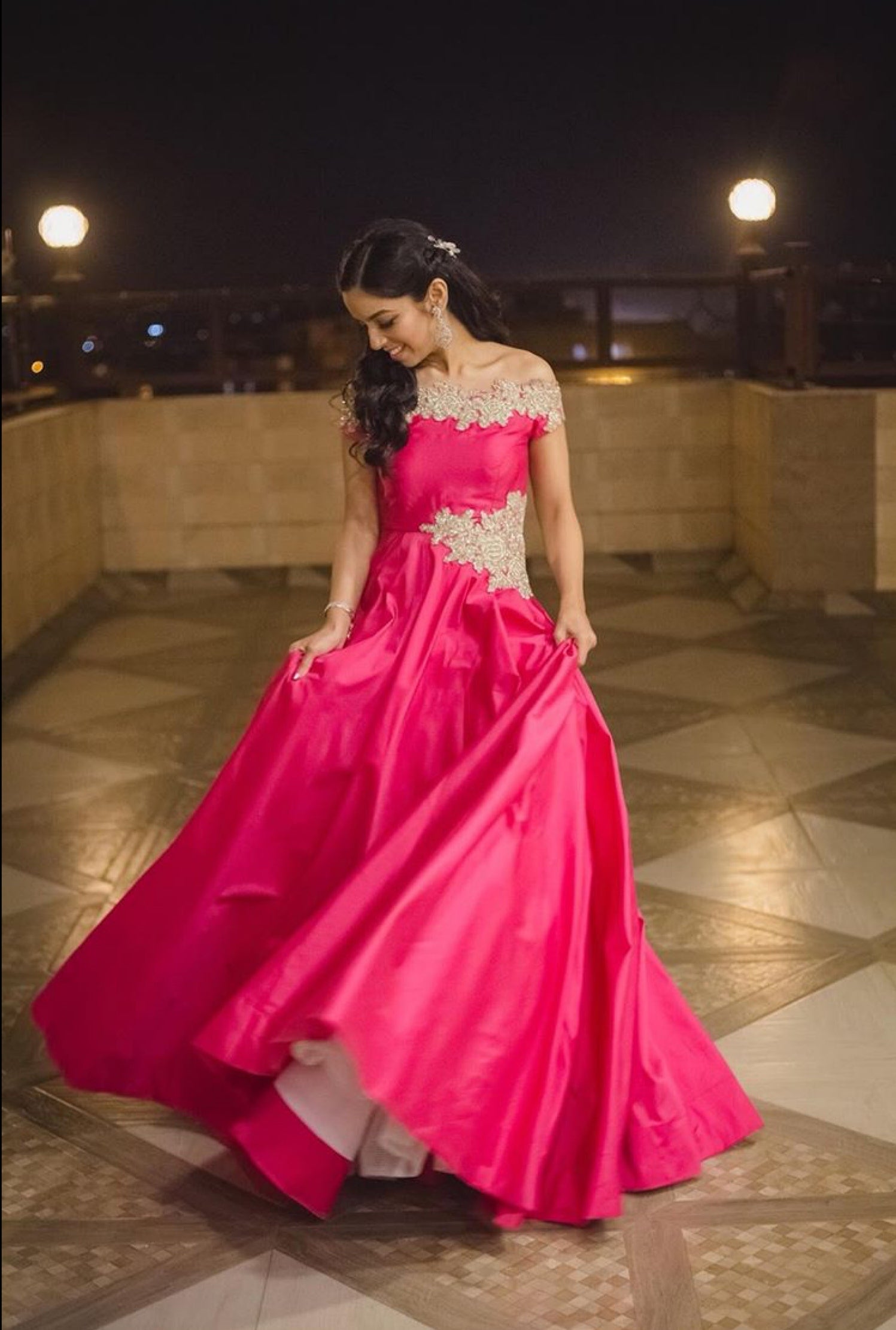 Our beautiful client wanted an outfit for a formal ball themed reception. She wanted to move away from the more muted and simple colours. We crafted this stunning pink gown with gold embellishment to uplift the look.