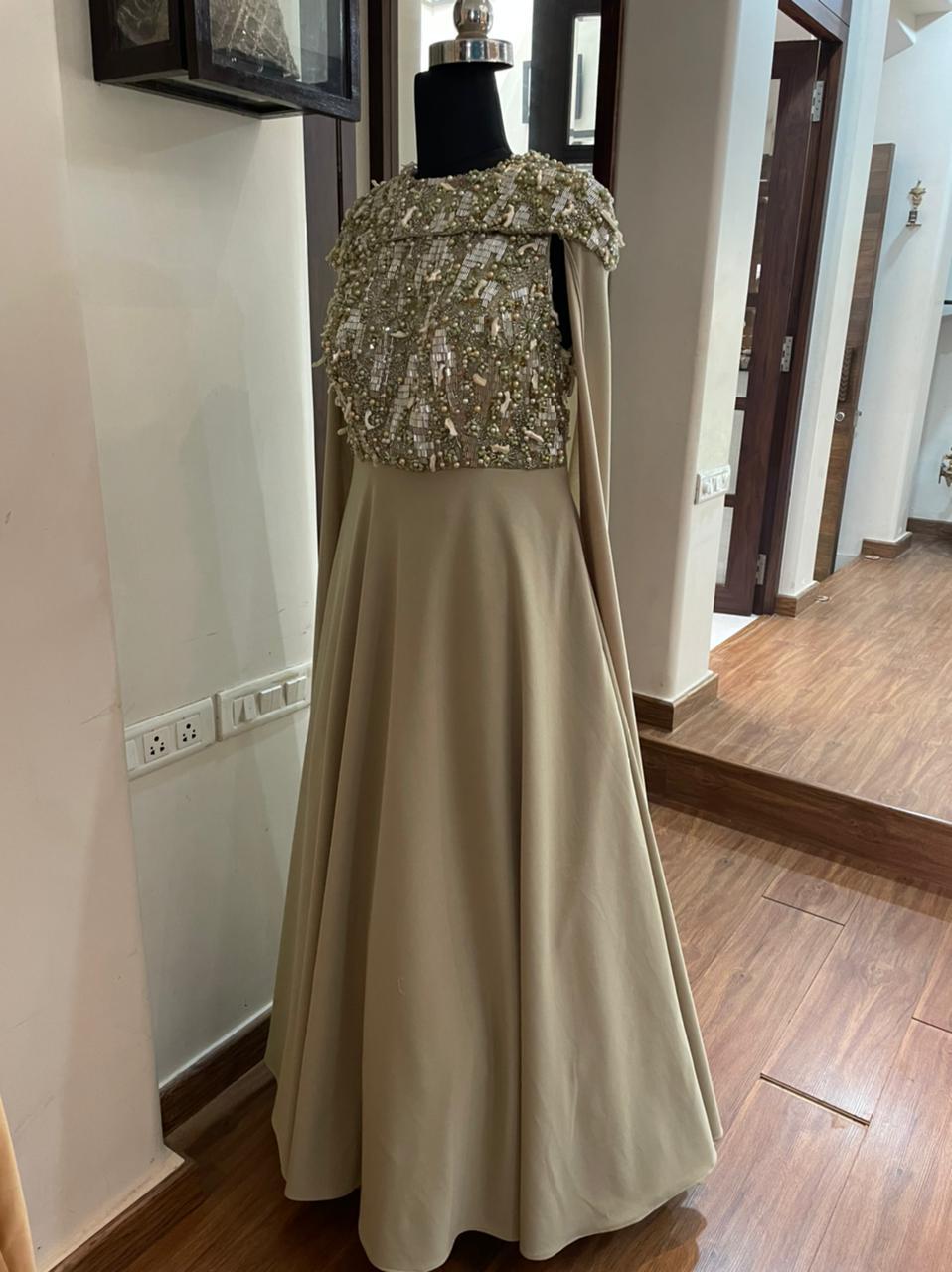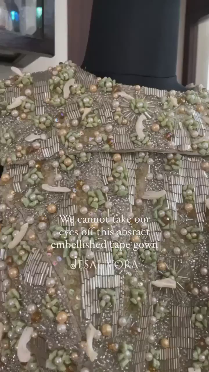 Keeping our client's personality and preferences in mind, we curated this dazzling look with artisanal handiwork and a trailing cape. The look was highlighted with hand-embroidered stones, pearls and diamonds.